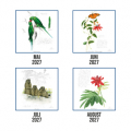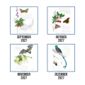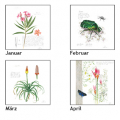 Meisterliche Aquarelltechnik. Die besonders detailgetreuen, realitätsnahen Motive sind kleine, farbenfrohe Kunstwerke. Mit fundierten Beschreibungen der dargestellten Tiere und Pflanzen auf der Rückseite.