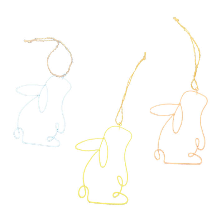 Drei niedliche Draht-Osterhasen in Pastelltönen. 3-fach sortiert.