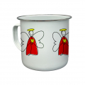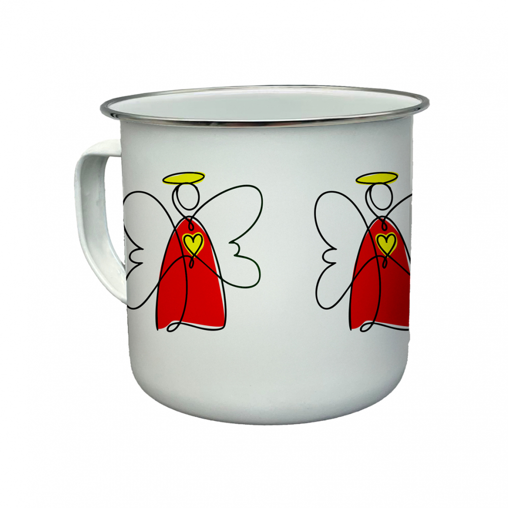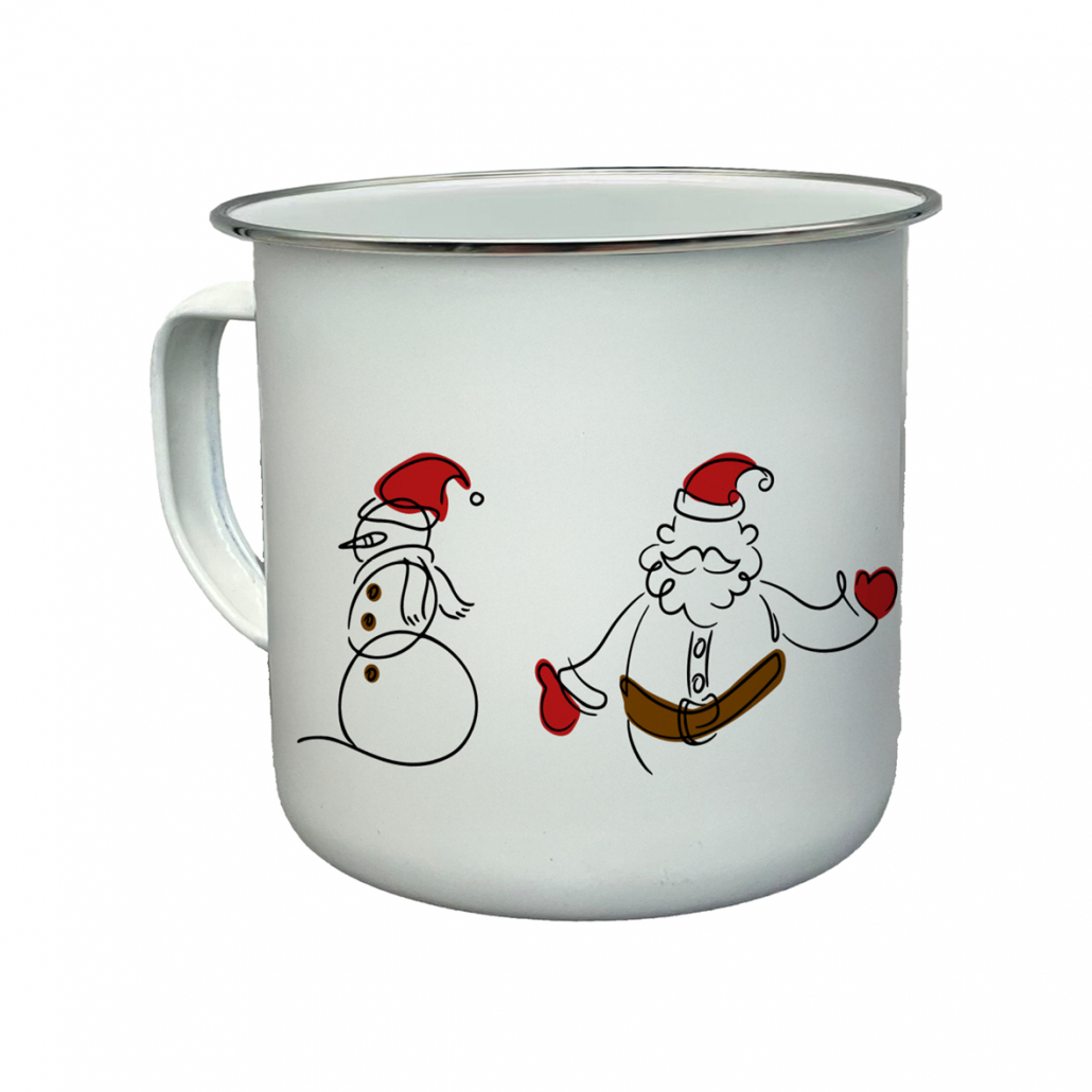 Weihnachtliche Emaille-Tasse „Weihnachtszeit“ mit silberfarbenem Rand im Geschenkkarton. Fantas(s)tische Werbung ab dem ersten Kaffee. 2-fach sortiert.