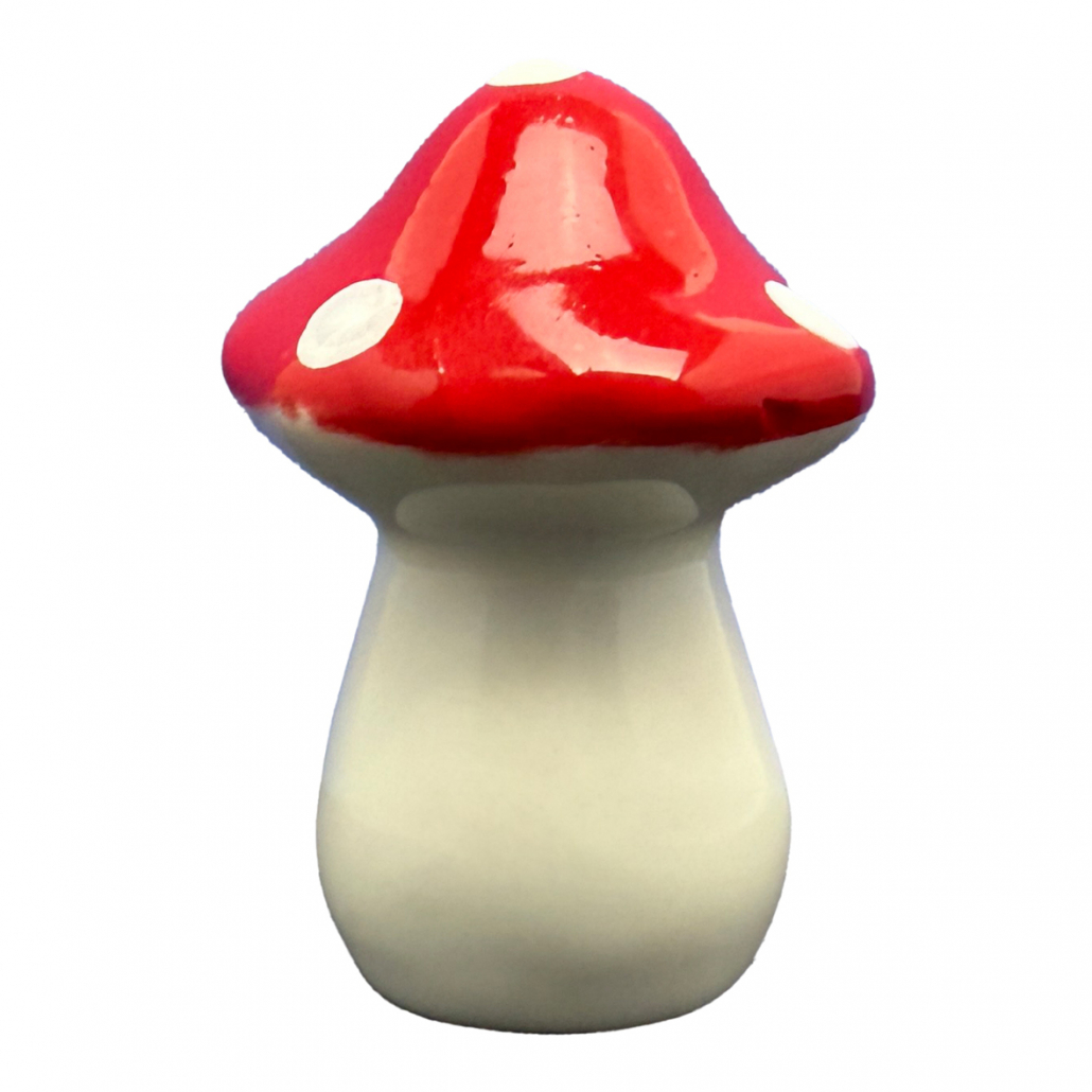 Der Fliegenpilz „Rotkäppchen“ aus Keramik ist ein vielseitig einsetzbares Dekoobjekt.