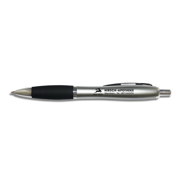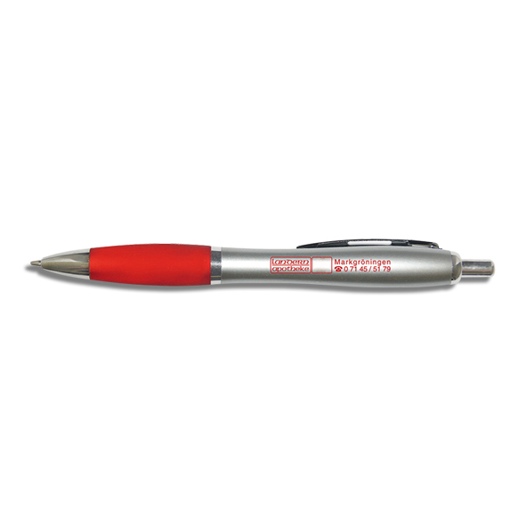 Der Kugelschreiber „Barcelona“ vereint modernes Design mit Funktionalität. Sein silberfarbener Schaft wird durch eine farbige Gummimanschette ergänzt, die für einen angenehmen Griff sorgt und dem Stift eine elegante Note verleiht. Blau schreibende Mine. Ein individueller Firmendruck auf dem Schaft macht diesen Kugelschreiber zu einem idealen Werbegeschenk, das sich täglich in den Händen Ihrer Kunden wiederfindet