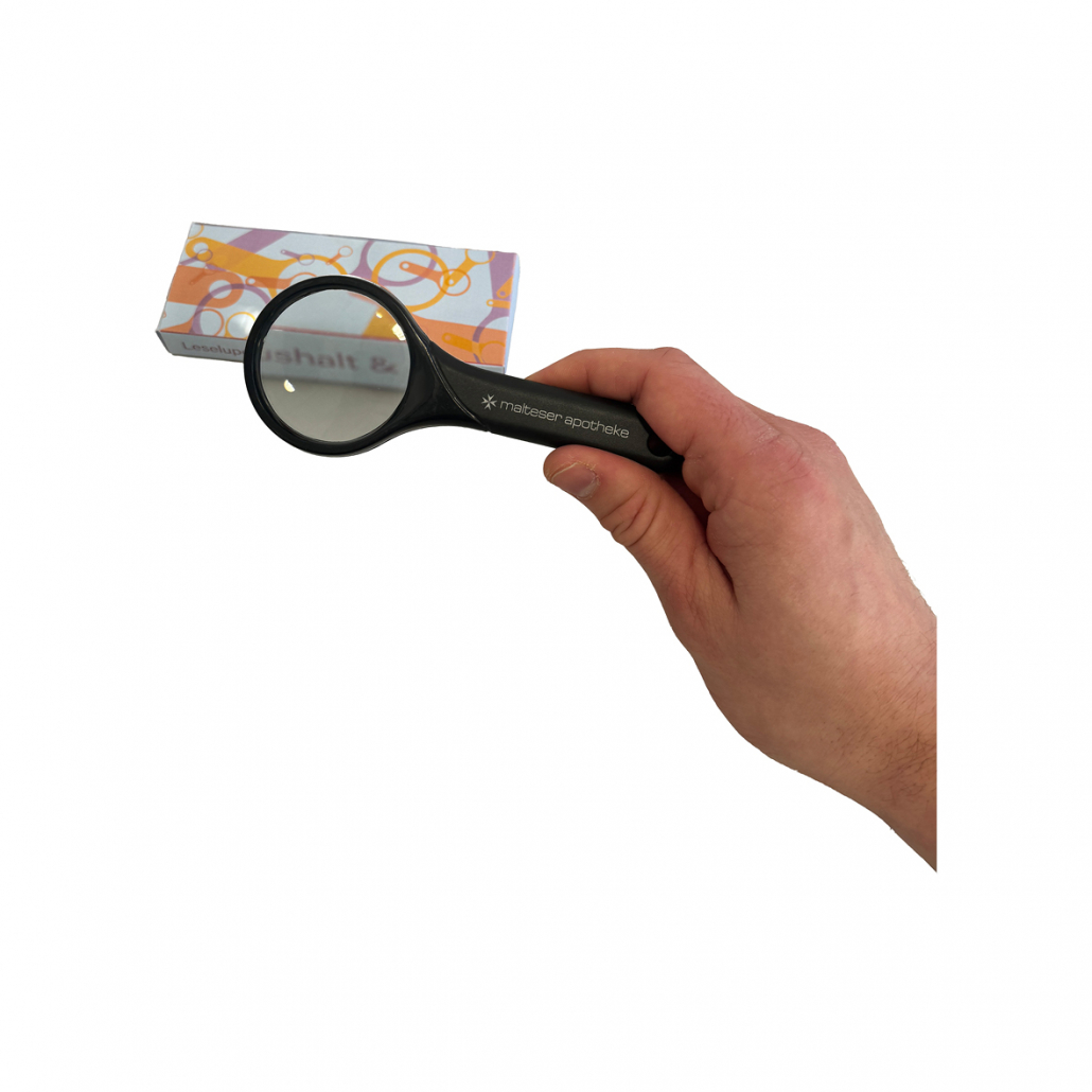 Die schwarze Lupe im Karton ist der perfekte Begleiter für präzises Vergrößern.