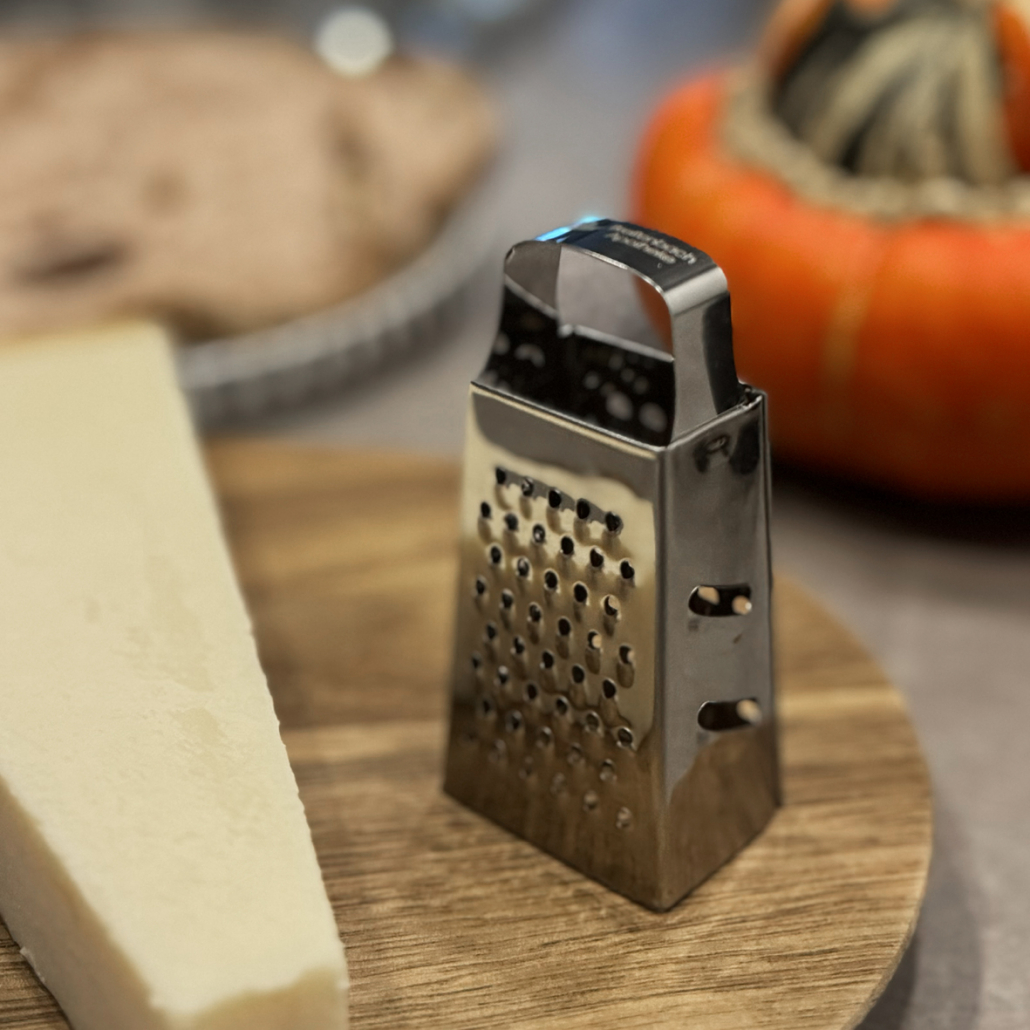 Kleine Reibe, großer Werbeeffekt. Hochwertige Mini-Küchenreibe mit Ihrem gravierten Logo auf Craftpapier-Karton befestigt. Für Parmesan, Muskatnuss, Ingwer …
