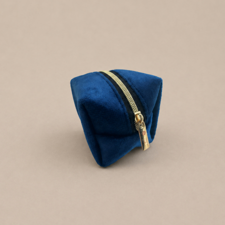 Kleine blaue Kosmetiktasche aus weichem Samt – stilvoll, elegant und ideal für Make-up, Pflegeprodukte oder kleine Alltagshelfer.