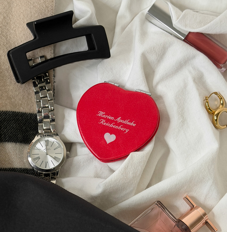 Taschenspiegel „Herz“ mit individuellem Druck. Marketing, das gut aussieht.